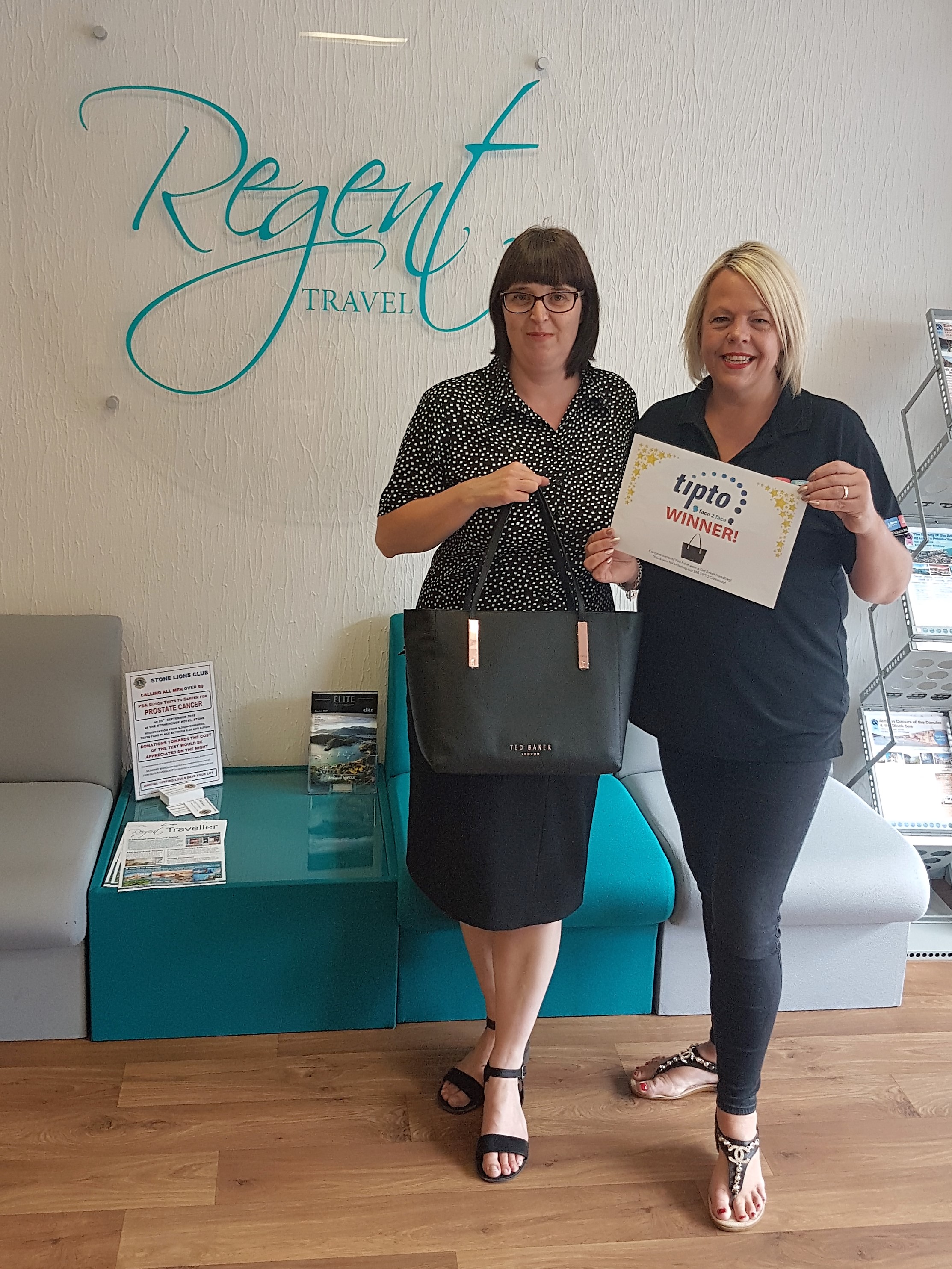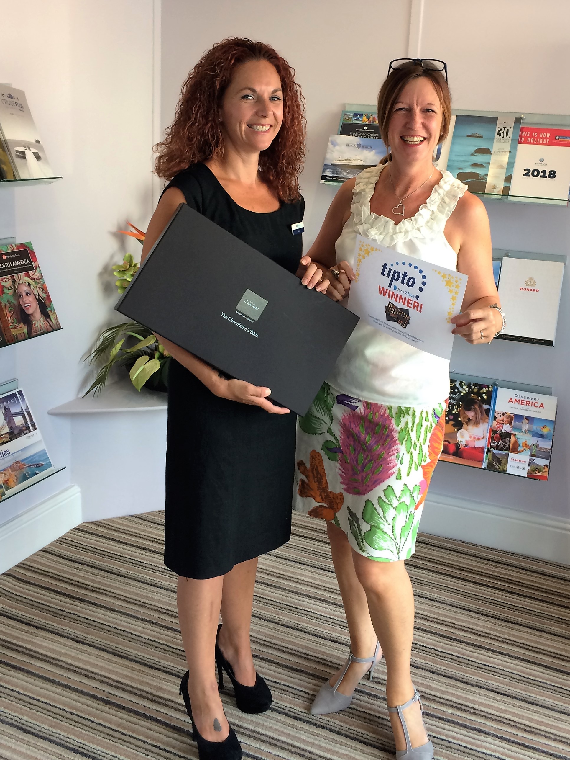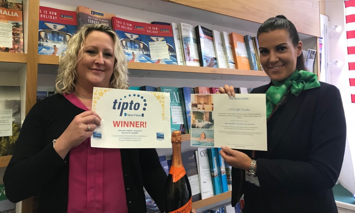 And the winner is Samantha Duffett from Easytravel in Malvern! Congratulations, you won a spa day for 2 people with treatments! Samantha is pictured left receiving her voucher and Prosecco from Sophie West at Royal Caribbean!