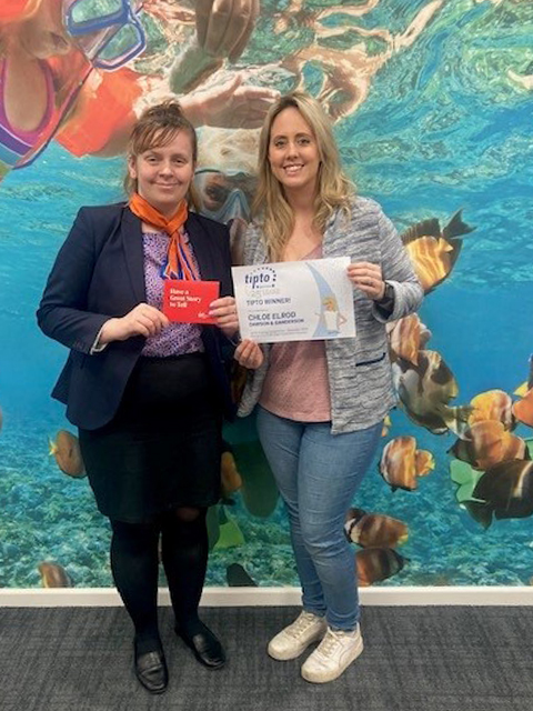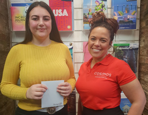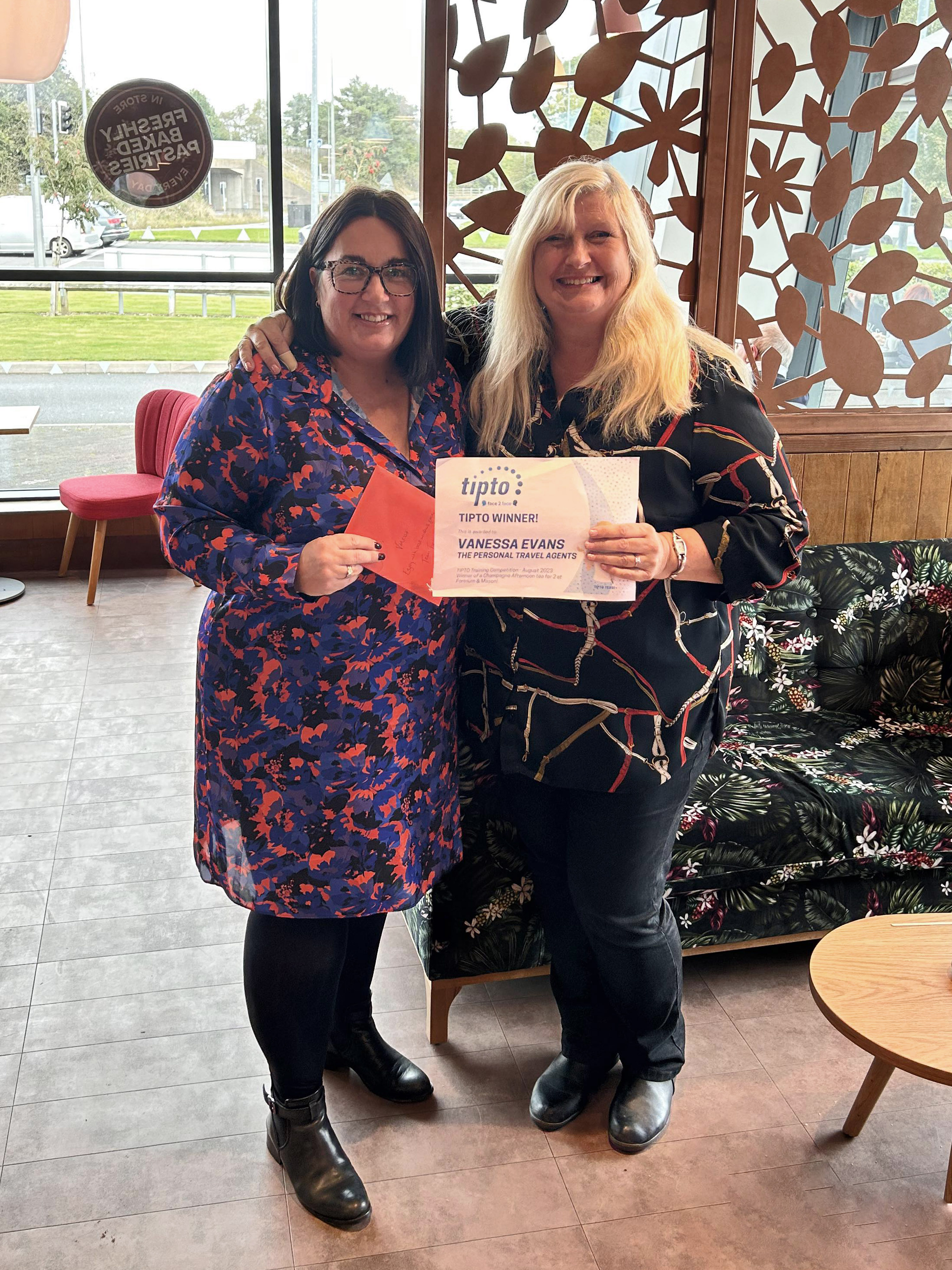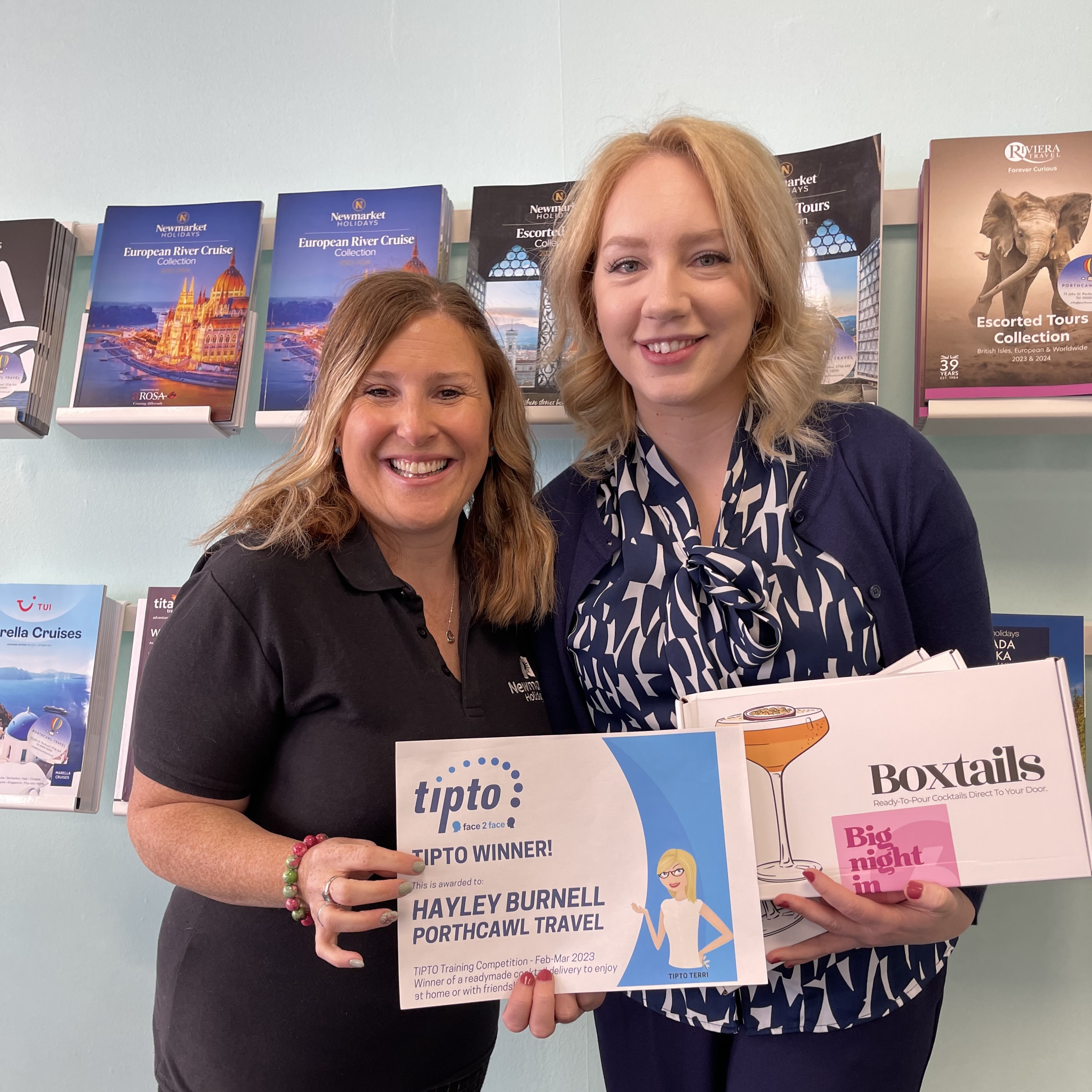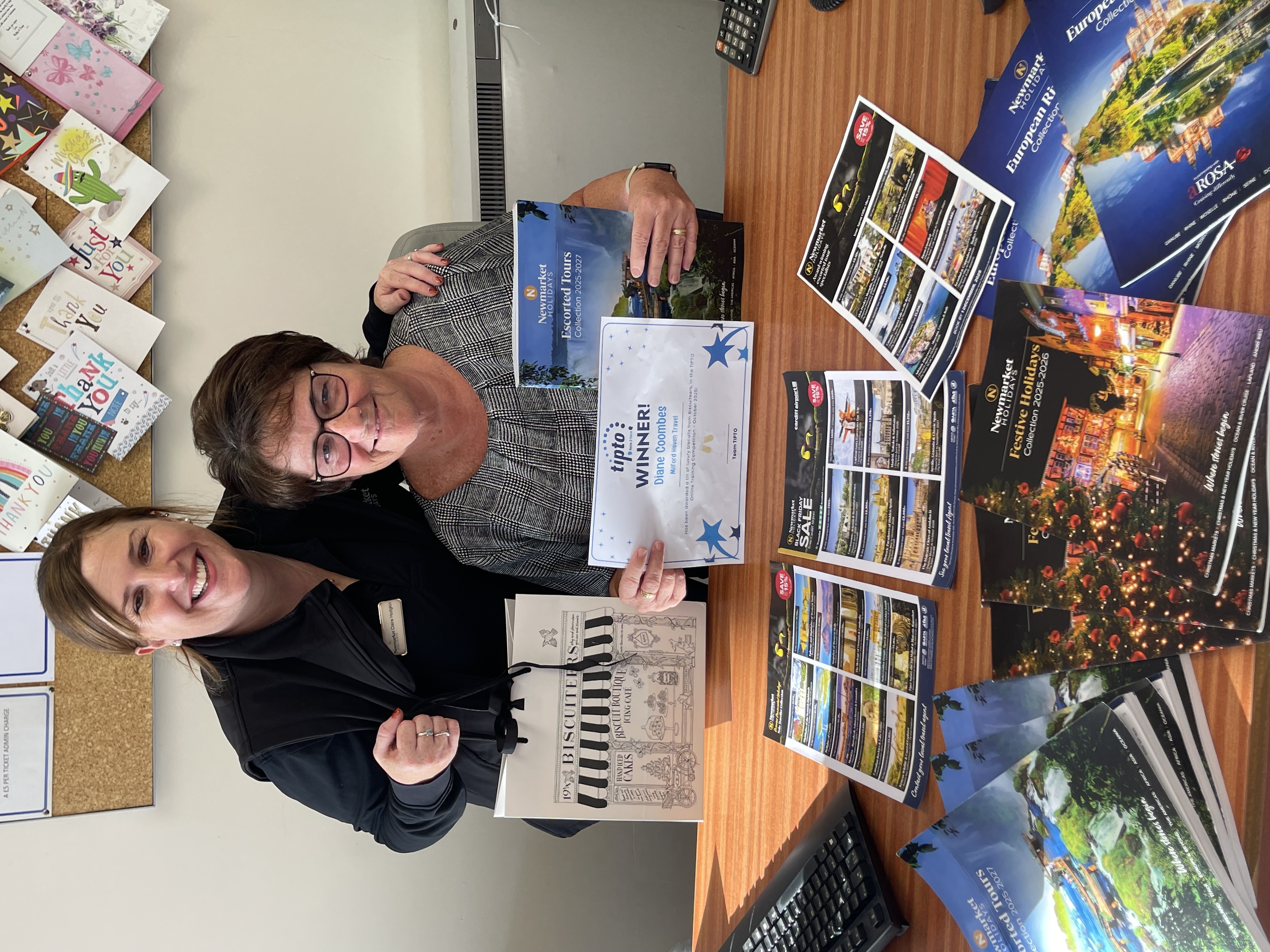 Diane Coombes | Milford Haven Travel Agency - receiving her prize from Claire at Newmarket Holidays!
