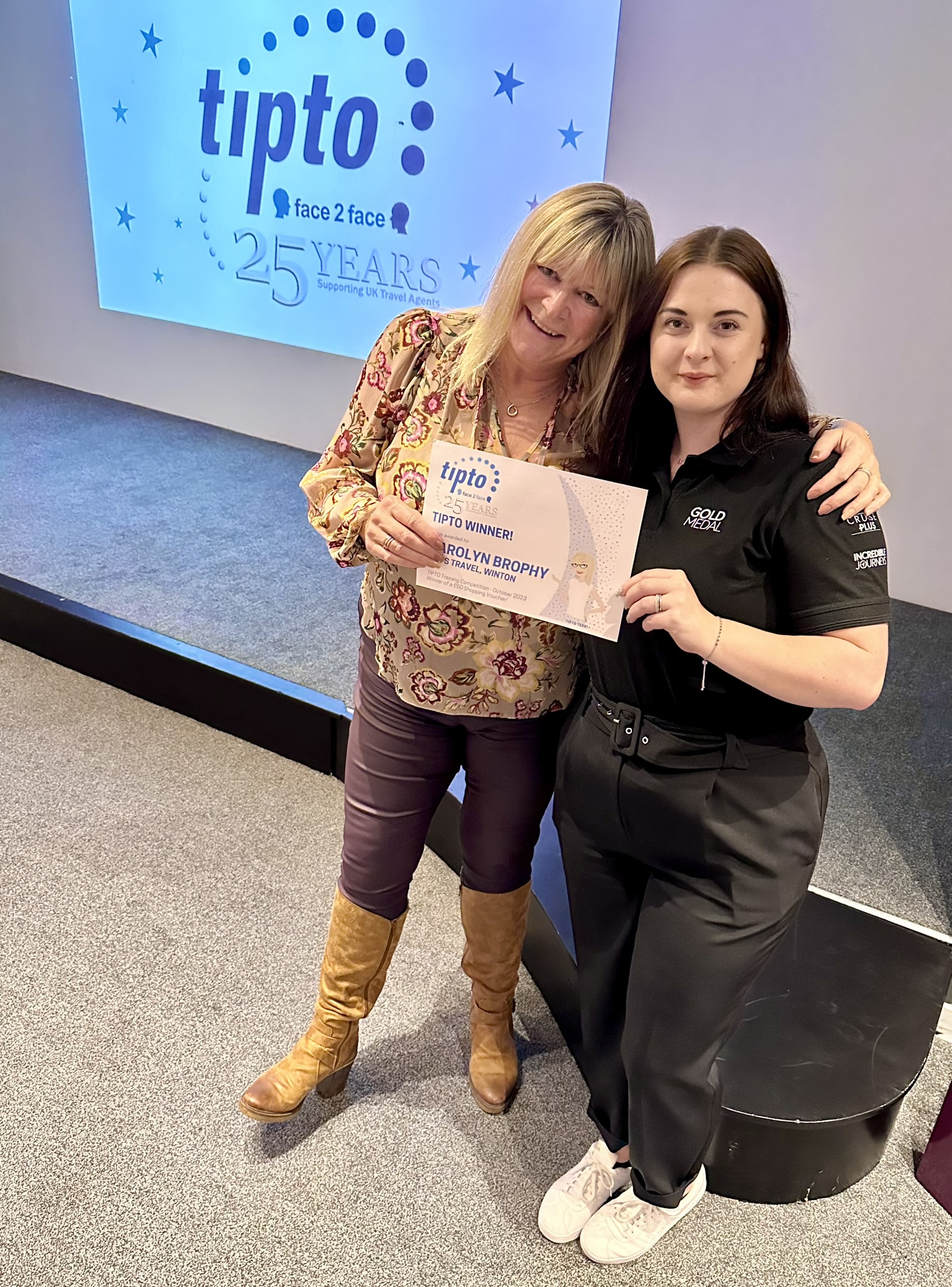 Pictured here receiving her prize off Karen Fletcher from Gold Medal!